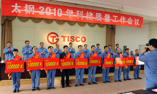不銹鋼股份公司總經(jīng)理劉復(fù)興在會上宣讀了表彰決定。大會對2009年度重點產(chǎn)品SBU、爐料結(jié)構(gòu)優(yōu)化提質(zhì)降本SBU、質(zhì)量工作先進單位、質(zhì)量-成本最佳操作者/管理者、省部級以上科技成果、太鋼科學(xué)技術(shù)獎、優(yōu)秀科技人員進行了隆重表彰獎勵。其中,技術(shù)中心不銹鋼研發(fā)室、高級工程師李國平,技術(shù)中心物理室光電組組長、教授級高級工程師張壽祿,二鋼廠副總工程師、工程師陳景鋒,熱連軋廠生產(chǎn)技術(shù)科副科長、高級工程師趙新剛,自動化公司ERP項目組、高級工程師張長紅,設(shè)計院動力室、高級工程師王立群,裝備部工建爐窯室主任、高級工程師祁偉林,峨口鐵礦項目部、高級工程師楊運江,臨鋼技術(shù)中心、工程師陸淑娟,太鋼總醫(yī)院心內(nèi)科導(dǎo)管室主任、主任醫(yī)師王慧峰10名優(yōu)秀科技人員受到每人10萬元重獎。