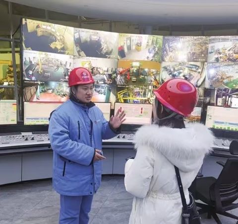 圖為廖席正向《中國(guó)冶金報(bào)》記者介紹2025年新春期間的生產(chǎn)安排(薛志軍 攝)